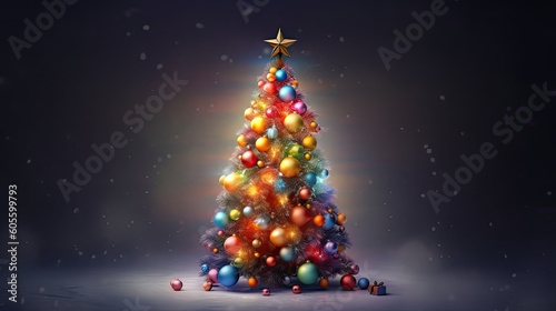 christmas, tree, background, decoration, christmas, star, year, new, ball, winter, holiday, realistic, colourful, colours, art, illustration, ai, generative, generated