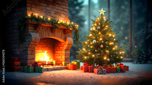 christmas, tree, decoration, holiday, christmas, christmas tree, celebration, winter, light, ornament, gift, ball, room, decoration, season, fir, fireplace, home, december, star, new, year, present, gold, ornament
