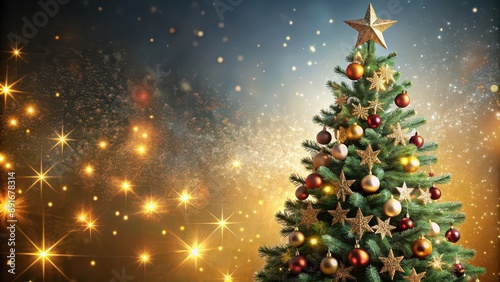 Christmas tree decorated with sparkling stars, holiday, festive, decoration, ornaments, celebration, winter, lights