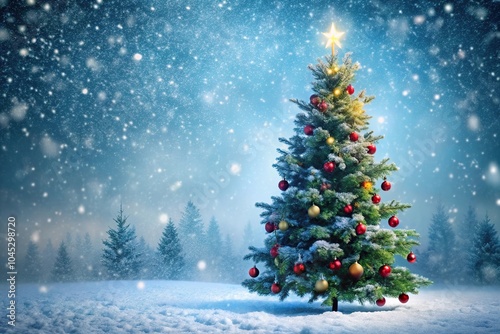 Christmas tree in snowy background with background lights