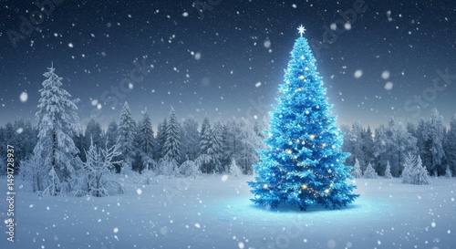 christmas, tree, snow, night, winter, forest, light, snowy, landscape, beautiful, festive, decoration, holiday, christmas, celebration, sparkle, magical, serene, winter landscape, illuminated, blue, light, nature, cold, calm, sparkling, illumination, pretty, amazing, marvellously, picture, scene