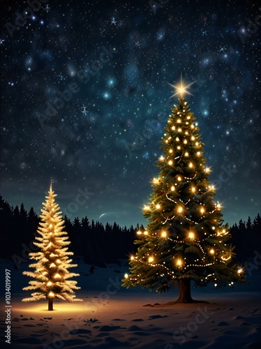 christmas, tree, winter, holiday, snow, christmas, star, decoration, card, celebration, christmas tree, illustration, vector, new, new year, merry, season, design, year, fir, night, light, snowflake, greeting, ornament