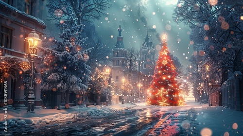 winter, snow, city, holiday, christmas, tree, festive, decoration, light, cold, atmosphere, celebration, joy, urban, landscape, seasonal, beauty, outdoors, charme, night, magic, gathering, community, skyline, tradition, vibrant, colourful, pine, street, cheer, scene, elegance, warmth, festivity, illuminated, culture, wonder, nature, presence, greenery, cosiness, spirit
