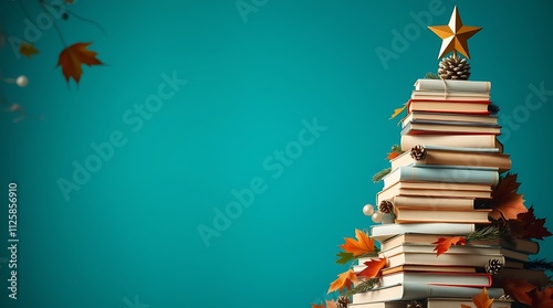 christmas, tree, book, green, background, holiday, season, reading, concept, festive, decor, literature, education, cognition, cosy, seasonal, intellectual, celebration, creative, literary, tradition, learning, merry, unique, bookish