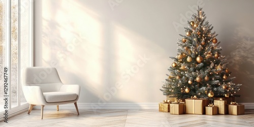 Christmas Tree Minimalist Living Room Decor with Armchair and Gifts