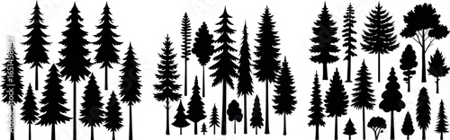 nature, set, spruce, graphic, coniferous, pine, forest, silhouette, tree, wood, tree branch, abstract, black, park, vector, design, icon, card, evergreen, shape, natural, timberland, isolated, plant, fire, environment, banner, decor