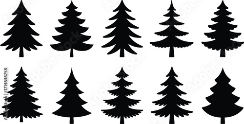 Christmas tree silhouette set, pine tree vector collection, black evergreen trees, nature icon design, holiday illustration, forest symbol, seasonal graphic, clipart for design