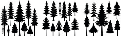 Christmas Tree Silhouettes and Pine Tree Icons Set Forest Fir Trees and Decorated Holiday Trees Vector Collection
