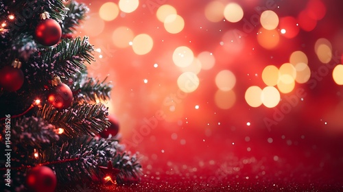 Christmas tree softly glows red blurred lights photo wide shot. AI Generated