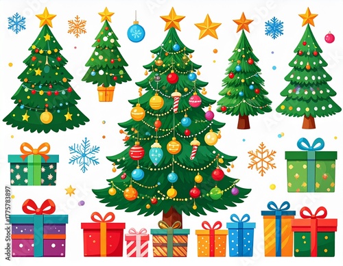 christmas, tree, holiday, christmas tree, star, gift, decoration, fir, vector