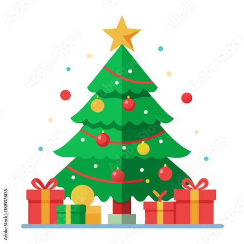 Christmas tree with gifts festive flat illustration for holiday greeting cards