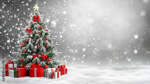 christmas tree, christmas background, christmas, snow, background, tree, red, silver, gift, elegant, abstract, texture, space, happy, design, star, celebration, white, holiday, card, snowflake, advent, conifer, copy, copy space, crystal, decoration, festive, fir, giving, gradient, grey, grey, invitation, magnificent