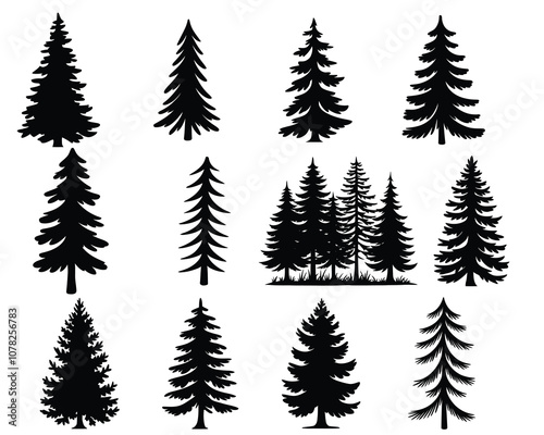 isolated, coniferous, card, vintage, trunk, shape, season, fir, tree branch, symbol, style, christmas tree, holiday, christmas, design, park, black, environment, illustration, wild, icon, collection, wood, silhouette, forest, vector, graphic, spruce, nature, pine, tree, plant