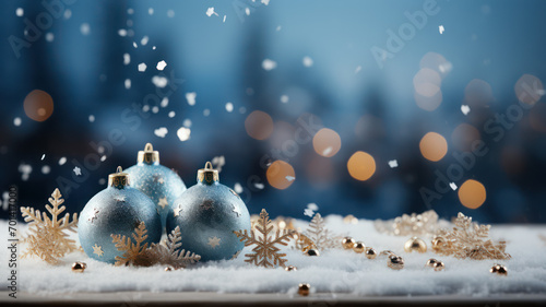 Christmas Winter Scene with Dreamy Bokeh and Snow