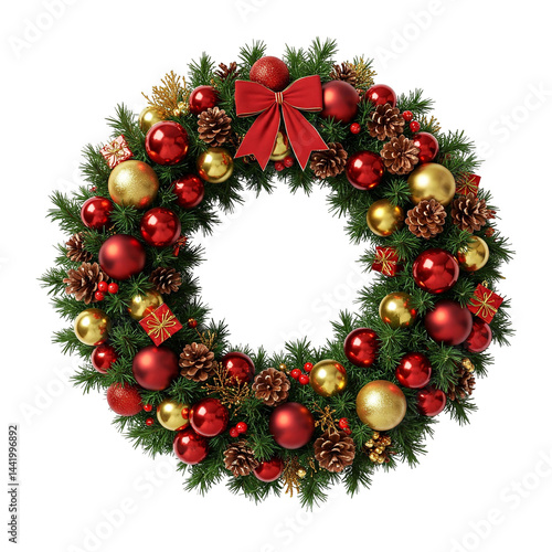 christmas, chaplet, decoration, holiday, christmas, ball, celebration, winter, garland, holly, tree branch, border, ornament, year, ribbon, green, merry