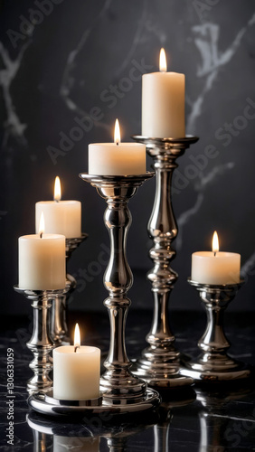 Chrome candlesticks add refined glow to modern interior, reflecting subtle flickers that enhance home ambiance. Polished silhouette underscores creative design, emphasizing chrome allure