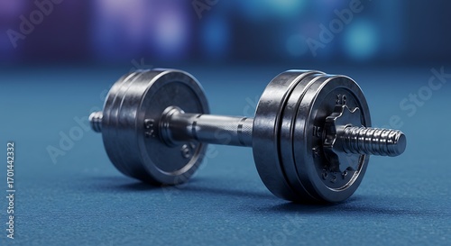 Chrome Dumbbell on Blue Surface