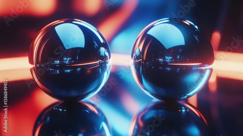 Chrome spheres, neon glow, dark studio, reflection