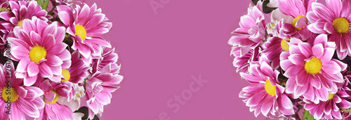 daisy, chamomile, pink, yellow, white, purple, aster, flower, beautiful, decoration, natural, plant, flower, soft, closeup, blooming, floral, arrangement, composition, edge, border, background, holiday, greeting, card, copy space, invitation, tender, pastel, beige, wedding