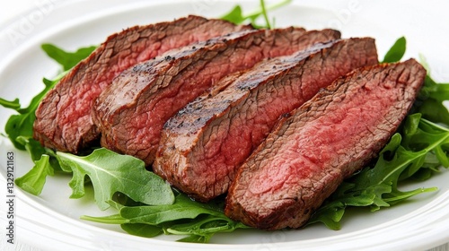 Chuck food steak concept. Grilled steak cooked to perfection served on a bed of greens