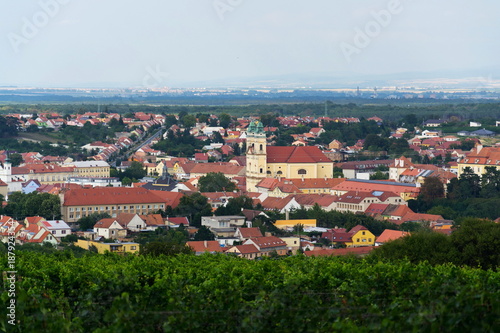 Church and castle in Valtice baroque town panorama, part of UNESCO World Heritage Site, Moravia, Czech Republic