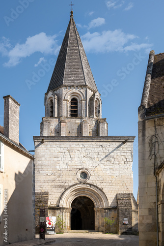 Church Saint Ours or Saint Oars in the Royal City of Loches on a sunny spring afternoon, Indre et Loire, France