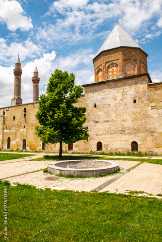 Cifte Minareli Medrese (Double Minaret Thelogical Schools). The structure is located at the city center. The structure has the biggest portal among the other theological schools in Anatolia. Sivas .