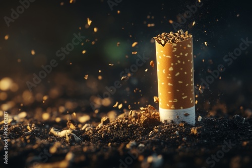 cigarette, butt, ground, ash, litter, pollution, environment, smoking, waste, debris, nature, denied, trash, fallout, earth, impact, destroy, crushed, remain, discarded, moment, closeup, texture, background, brown, light, dust, scattering, sunlight, evening, outdoors, close, detail, scene, still life, remnant, urban, lifestyle, health