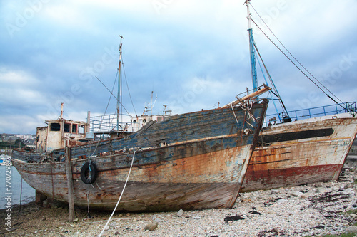 Cimetière de bateaux, Camaret, sous ciel couvert, Finistère