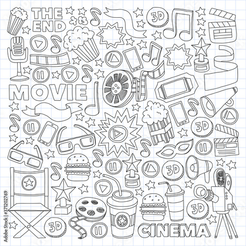 cinema, film, vector, hand, drawn, motion picture, object, goggles, design, three-dimensional, camera, entertainment, popcorn, video, vignetting, star, ticket, filmstrip, multimedia, symbol, art, background, abstract, icon, cartoon, television, flower, music, computer, car, retro, paper, television, isolated, motion, signs, megaphone, screen, equipment, action, doodle, industry, light, theatre, element, illustration, clapboard, director