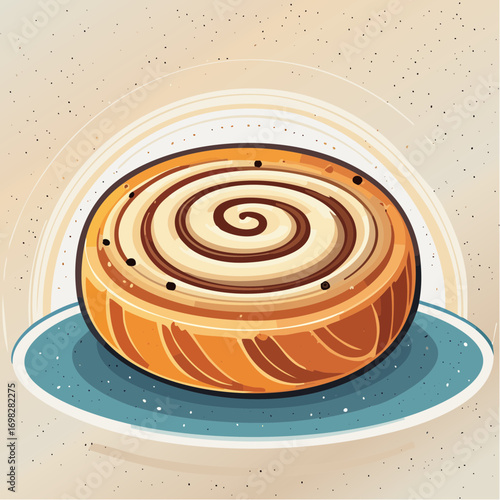 cinnamon, pastry, swirl, baked, sweet, dessert, food, delicious, tasty, treat, bun, spiral, icing, frosting, sugar, chocolate, chips, blue, plate, brown, beige, background, illustration, drawing, digital, art, graphic, design, bakery, cafes, breakfast, snack, good, confectionery, culinary, epicure, homemade, freshly