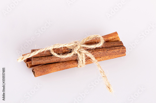cinnamon sticks tied with a tourniquet isolated on a white background