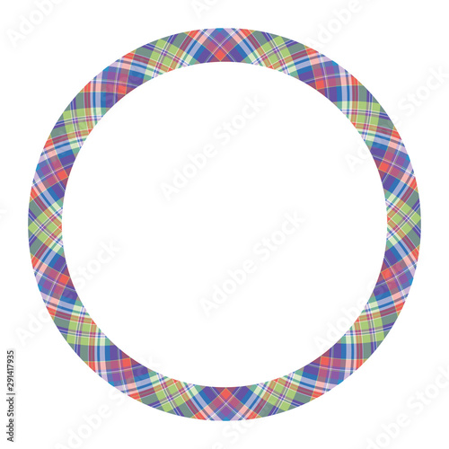 Circle borders and frames vector. Round border pattern geometric vintage frame design. Scottish tartan plaid fabric texture. Template for gift card, collage, scrapbook or photo album and portrait..