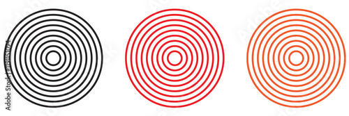 Circle red earthquake icon set. Round vibration graphic or red alert radar. Vector isolated illustration