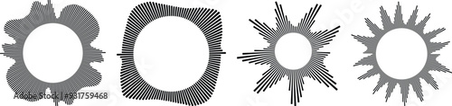 Circle sound wave collection. High frequency radio wave, Sound waves, Equalizer, Audio waves, Radio signal. Symbol of waveform burst rays.