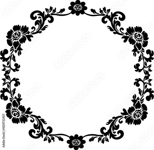 drawing, hand-drawn, victorian, frame, circle, round, vintage, flower, floral, decoration, border, pattern, art, ornament, decor, decorative, ornate, element