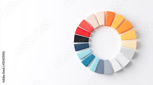 Circular Arrangement of Color Swatches Displaying a Vibrant Palette of Reds, Blues, Yellows, and Neutrals Perfect for Design Inspiration and Art Projects