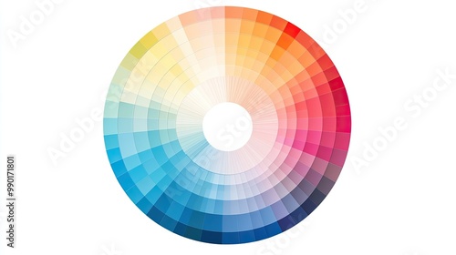 Circular color wheel, with warm and cool tones transitioning seamlessly from one side to the other, isolated against a white background