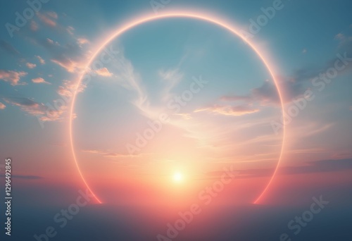 optical illusion, sky, pink, blue, orange, aethereal, nature, vibrant, glowing, sun, landscape, serene, celestial, mesmerizing, dreamy, atmospheric, natural wonder, light, radiant, misty, astronomy, surreal, cloudscape, heavenly, weather, soft light, peaceful, magical, twilight, horizon, breathtaking, sun ray, tranquil, aglow, harmony, scenic