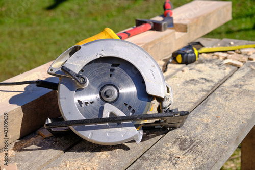 carpenter, wood, circular, construction, saw, woodwork, home, board, work, tool, circle, manual, electric, held, building, sawing, men at work, metal, closeup, person, plank, contractor, steel, industry, man, hand, timbering, carpenter's shop, rotary, sharp, outdoors, machine, cutting, occupation, use, carving, blade, handyman, timber, hand-made, profession, new, development, upgrade, woodworker, construction site, beam, cut off