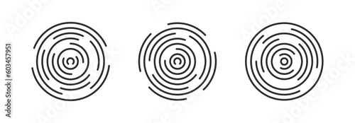 circular ripple icon set. Concentric circles with broken lines isolated on white background. Vortex, sonar wave, soundwave, sunburst, signal signs