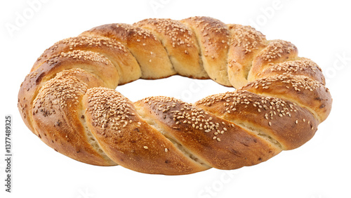 Circular Twisted Bread with Golden Brown Crust and Sesame PNG with White or Transparent Background