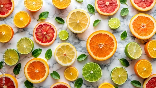 Citrus Burst: A vibrant arrangement of freshly sliced citrus fruits, including oranges, grapefruits, lemons, and limes, create a visually stunning and inviting composition.