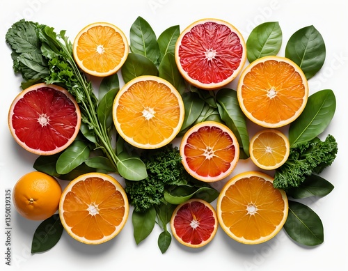 orange, orange, grapefruit, grapefruit, blood orange, lemon, lime, citrous, fruit, fruit, healthy, healthy eating, vitamin c, fresh, juicy, green leaf, kale, topview, food photography, still life, arrangement, colourful, vibrant, organic, diet, nourishment, wellness, food