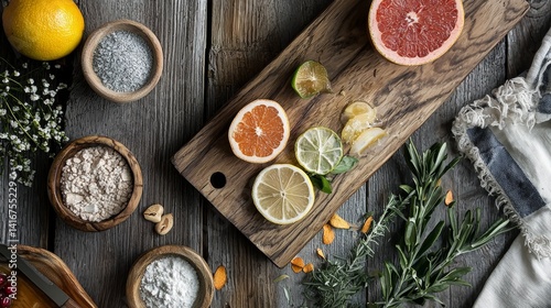 citrous, fruit, grapefruit, lime, board, rustic, kitchen, ingredient, herb, spice