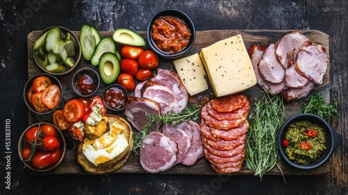 citrus pork, ham, pickled avocado, cheddar jack cheese, tomatoes