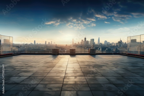 City from the building's roof, showing just the empty floors. city from the building's roof, showing just the empty floors. Ai generated