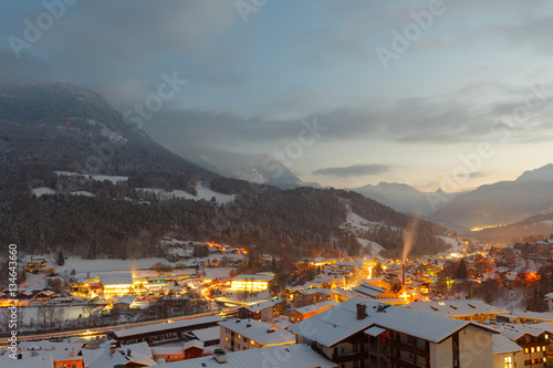 City of Berchtesgaden at sunset on a cold winter evening, long time exposure