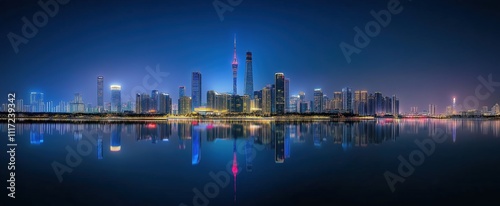 night, city, skyline, city landscape, river, downtown, skyscraper, building, water, urban, architecture, light, panorama, business, travel, tower, building, singapore, shanghai, harbor, dusk, sky, asia, bay