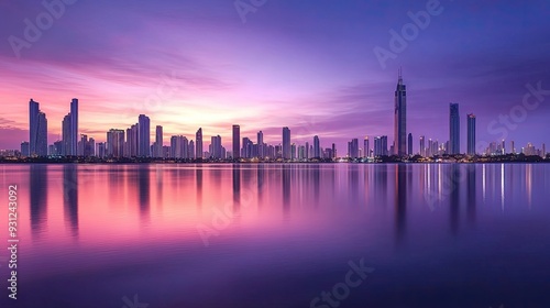 skyline, city, water, sunset, urban, architecture, modern, building, skyscraper, city landscape, evening, twilight, dusk, horizon, pink, purple, blue, calm, tranquil, serene, peace, beautiful, scenic, landscape, nature, light, golden hour, downtown, travel, tour tourism, sea, ocean, river, lake, glasses, concrete, steel, design, future, progress, development, growth, luxury, dream, hope, inspiration